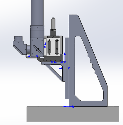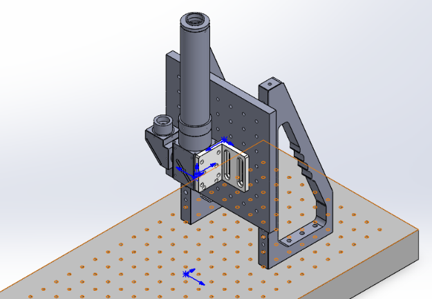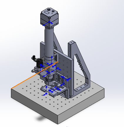 - 将“无限远校正180°管镜F=200mm”和直角连接件连接到一起,再连接到平板上。
