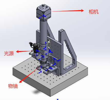 - 安装物镜、相机和光源