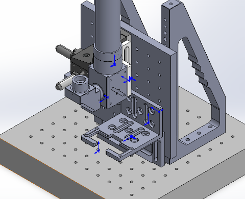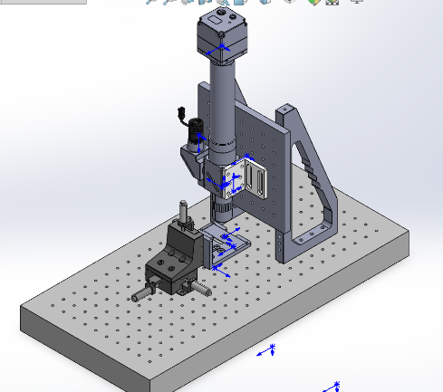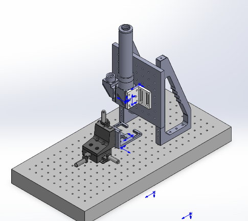 - 将“三轴精密位移台-左手型“和载物台连接好,再连接到底板上。