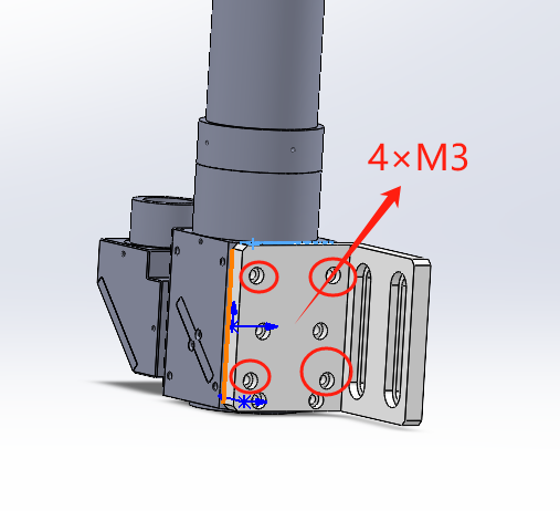 - 将“三轴精密位移台-左手型”与“直角转接板铝合金安装孔M6”连接;将“SWIR短波红外无限远校正管镜F=200mm”与“无限远校正显微管镜连接件”连接,近红外如下图所示孔位,可见光管镜连接另外四个孔位。