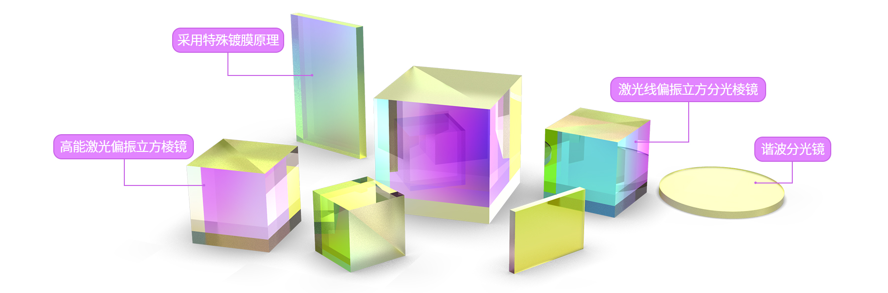 联合光科推出了入射角度是0°、波长是532nm、633nm、780nm、1064nm、1550nm的激光线偏振分光棱镜、波长为266nm、355nm、405nm、532nm、1064nm的高能激光偏振立方棱镜以及波长为355nm、532nm、1064nm的谐波分光镜。激光线偏振分光棱镜和高能激光偏振立方棱镜具有良好的透过率、高消光比等特点,而谐波分光镜针对不同激光波长良好的透射/反射效果,这些激光分光元件可广泛应用激光光学系统、教育科研等相关领域。