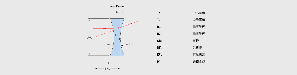 具有负焦距,适合发散会聚的光束,常用于光束的扩束、准直、投影及扩大光学系统焦距