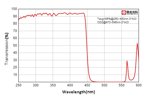 会员价 经济型短波通滤光片 Φ25mm 透射带:250~430nm 截止带:470~545nm