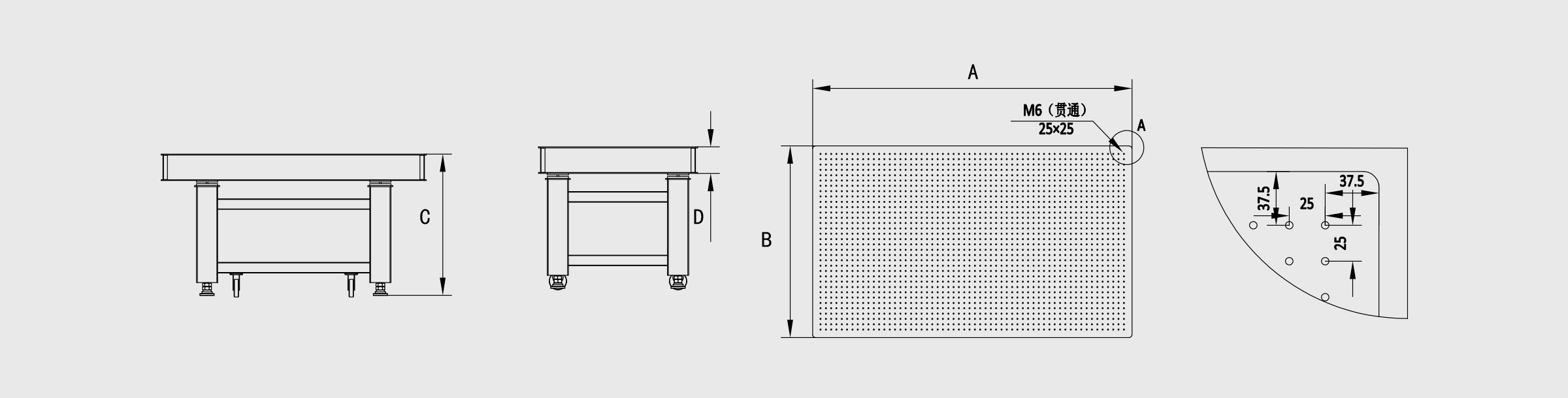适合于显微镜、光路测试、光学测量、激光干涉、激光扫描、光谱实验等领域应用。气弹簧式光学平台具有优异的隔振性能,具有自动调节水平功能,台面采用SUS430优质高导磁不锈钢,具有重量轻、高刚度、高阻尼等优点,经精密研磨处理,表面平面度高。回旋打磨工艺清除毛边,达到无反射、亚光效果,面板具有M6螺孔,易于固定位移台、调整架、光学元件及系统。