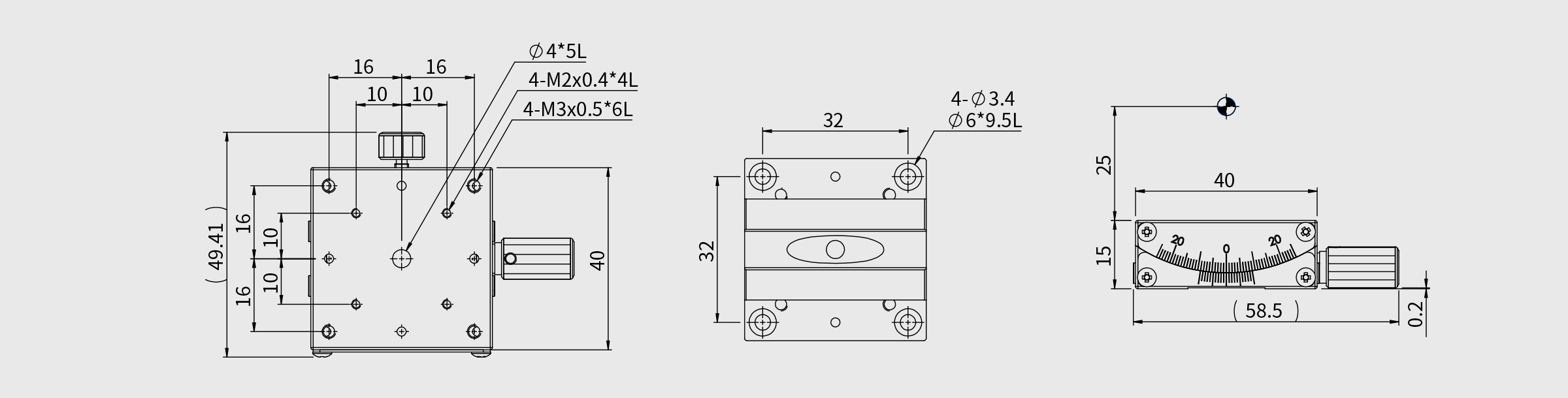 40x40mm 单轴倾斜平台(铜合金燕尾式)±20°