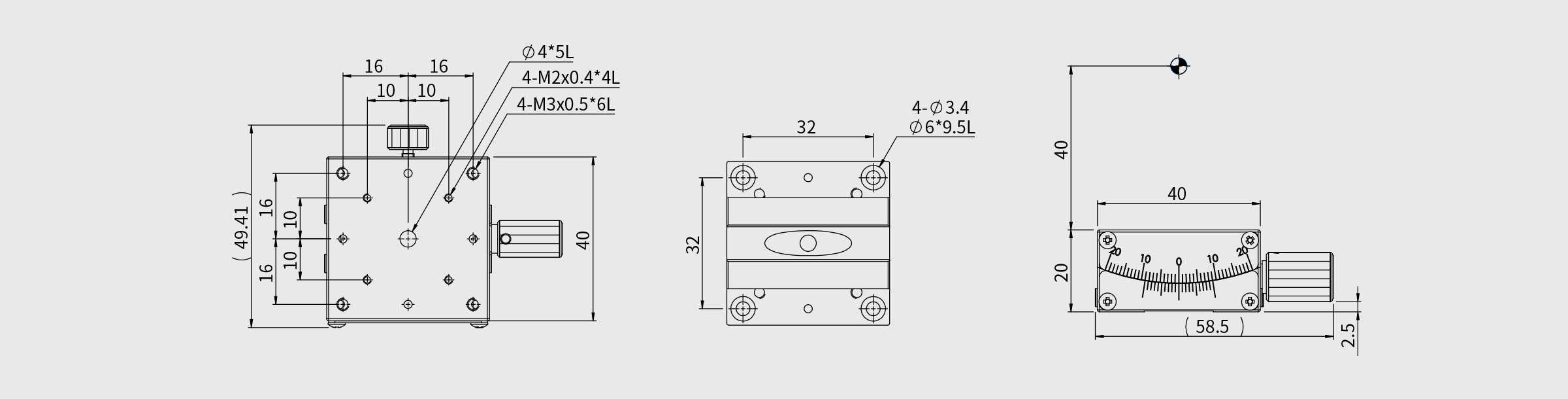 40x40mm 单轴倾斜平台(铜合金燕尾式)±15°