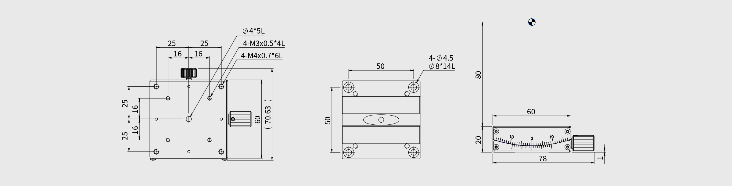 60x60mm 单轴倾斜平台(铜合金燕尾式)±15°
