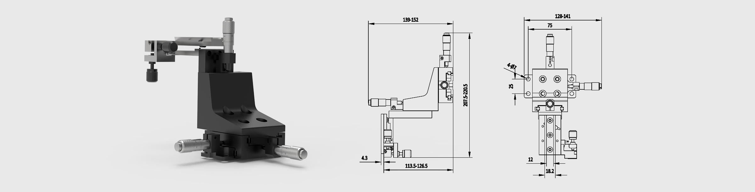 1.XYZ轴调节铝合金(黑色阳极氧化),千分尺驱动
