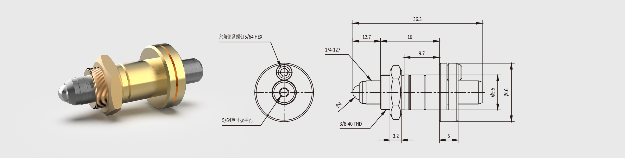 2. 螺纹规格有1/4-100(细牙)、1/4-127(超细牙)