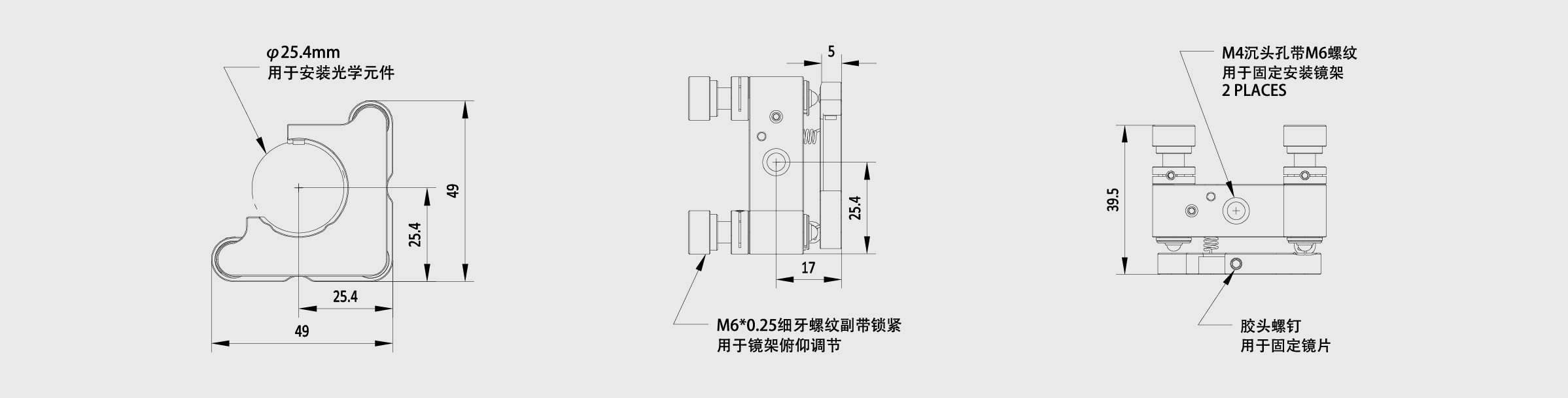 新品 C型开口反射镜架 右手系 夹持镜片尺寸25.4mm 三轴调节