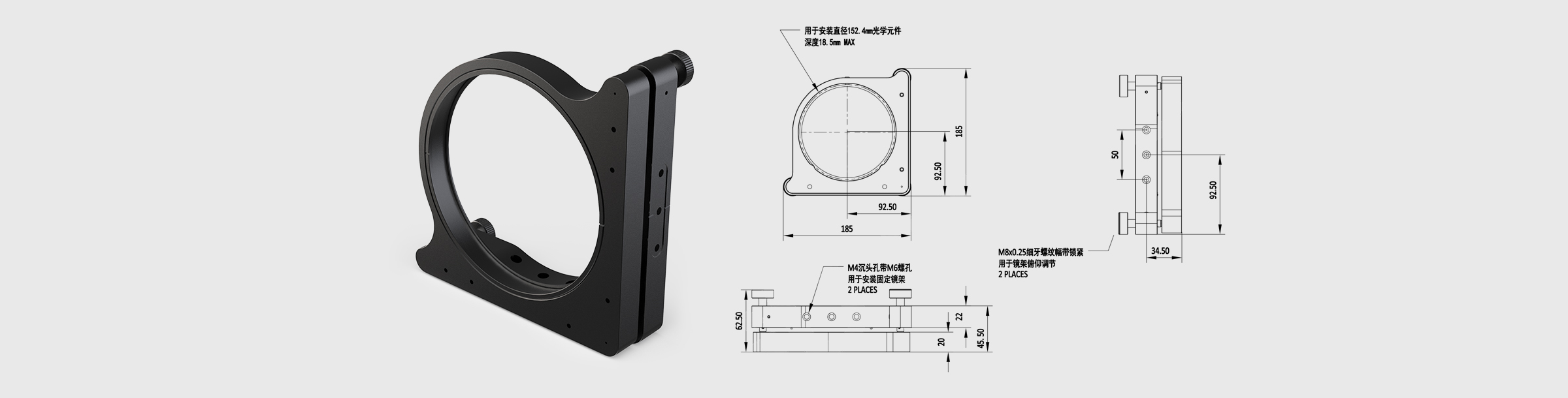 新品 大尺寸光学调整架 夹持尺寸152.4mm 压圈固定 两轴调节