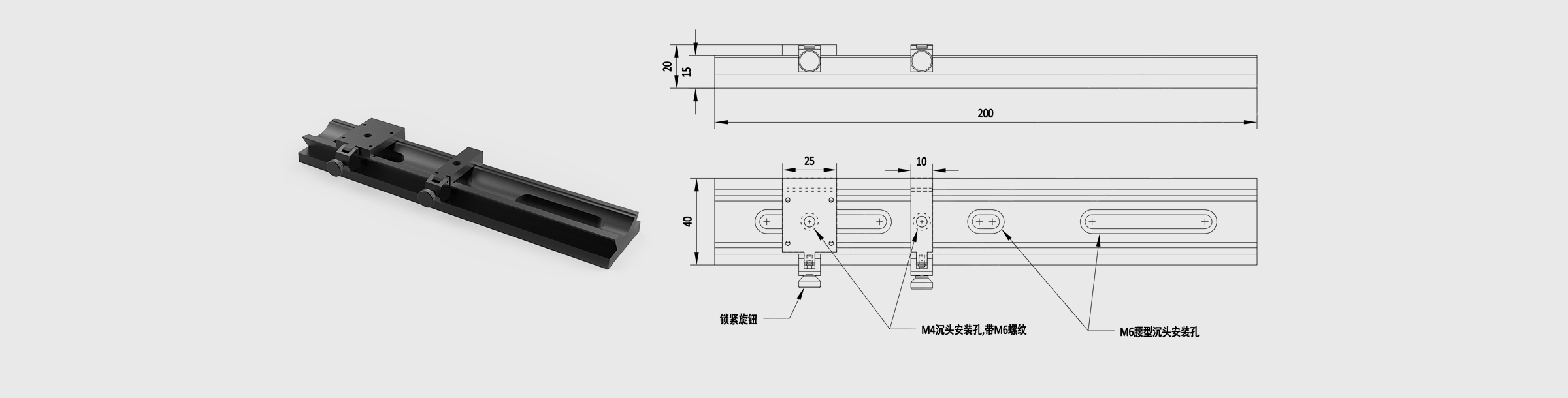 滑轨 宽度40mm 长度200mm 不带刻度