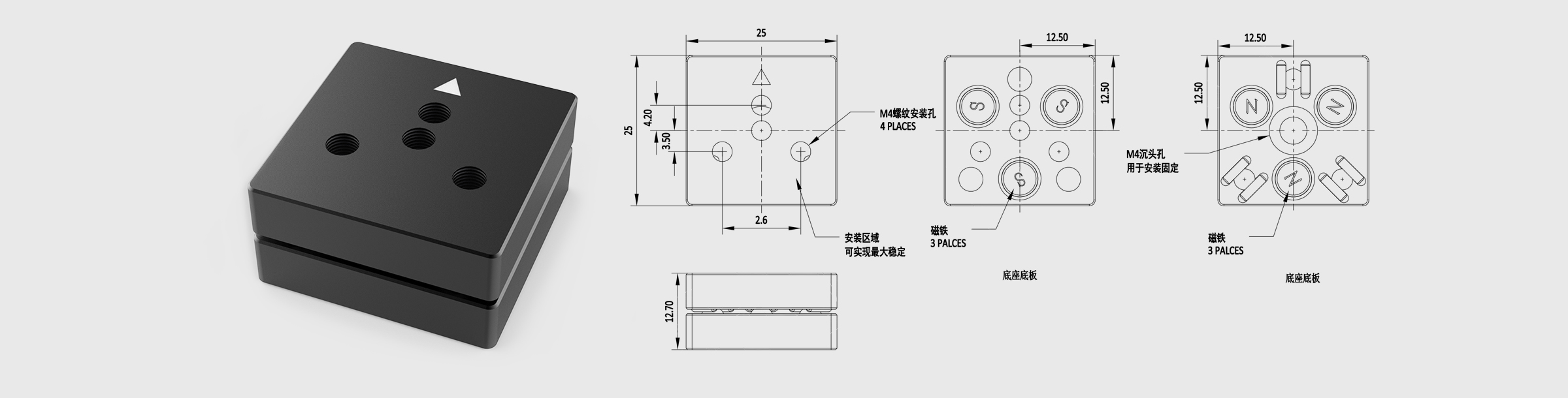新品 可快拆磁性底座 尺寸25*25mm 4个M4螺纹孔安装固定