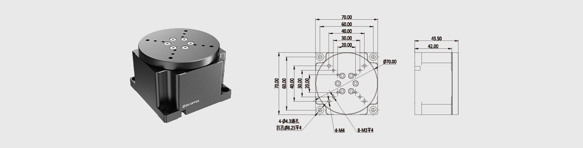 新品 压电纳米旋转台 台面直径70mm 感栅尺反馈 0.002°分辨率 360°行程 包含控制器