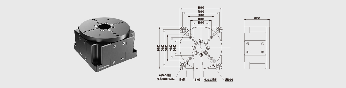 新品 压电纳米旋转台 台面直径80mm 光栅尺反馈 0.001°分辨率 360°行程 包含控制器