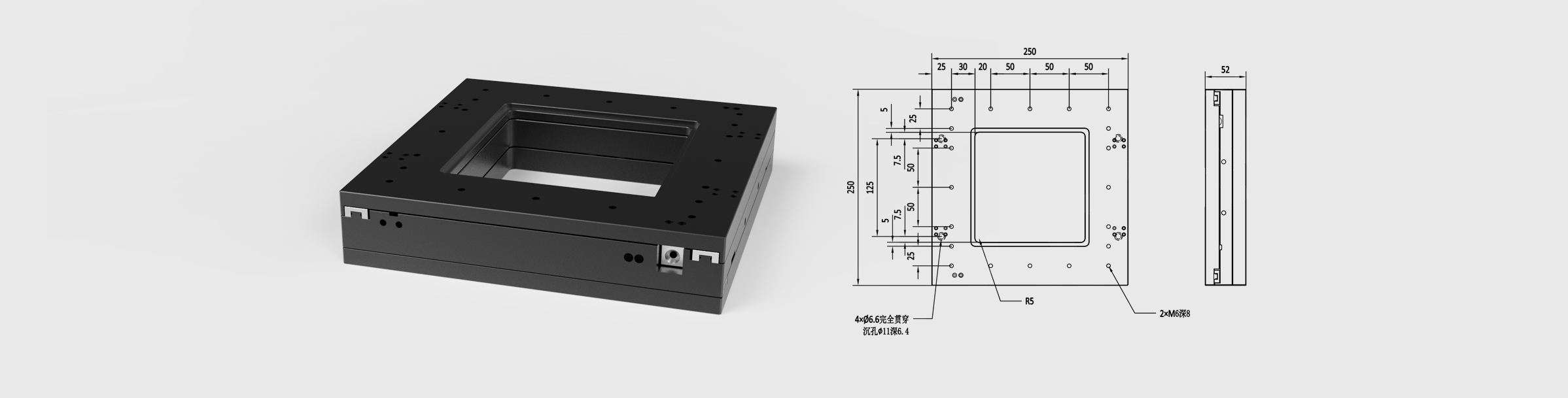 二维扫描台 台面宽度250mm 行程100mm 直线电机+直线导轨