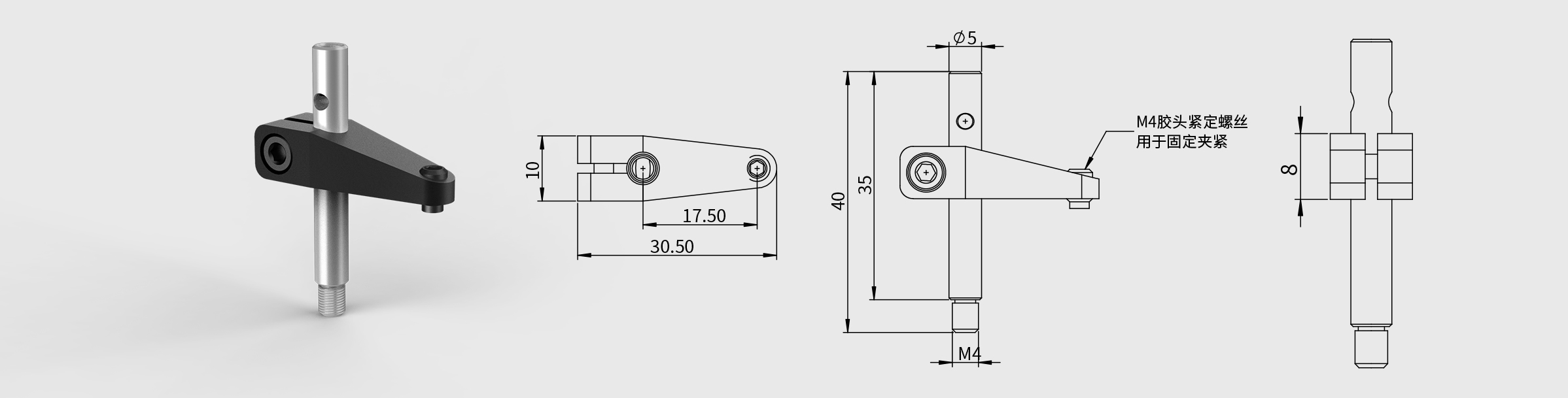 2. 527901接杆顶部有M4螺纹孔,底部有M4螺柱,可拓展长度;