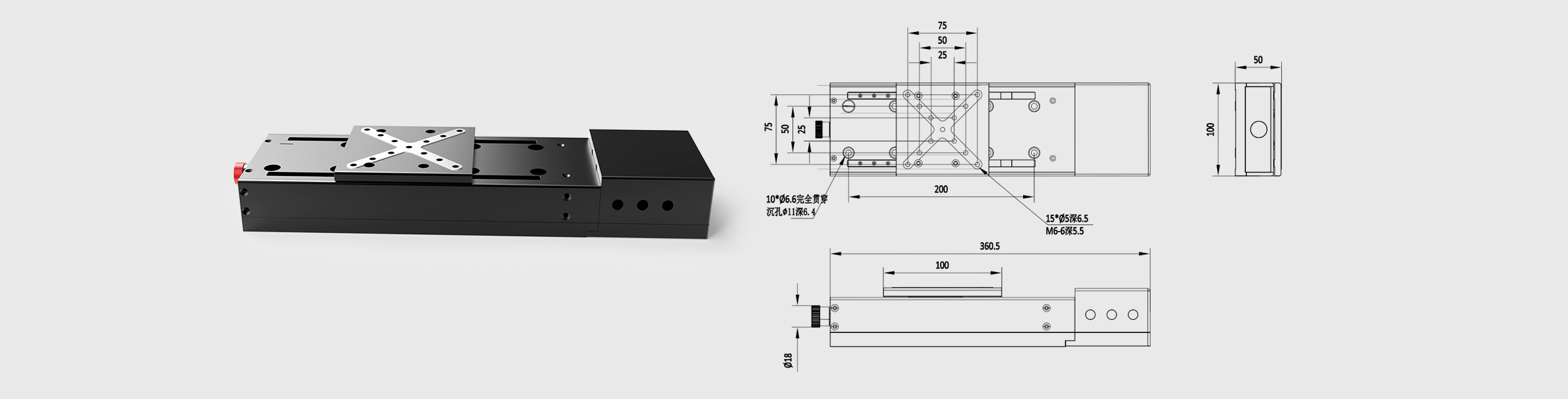 驱控一体直线位移台100x100mm台面100mm行程