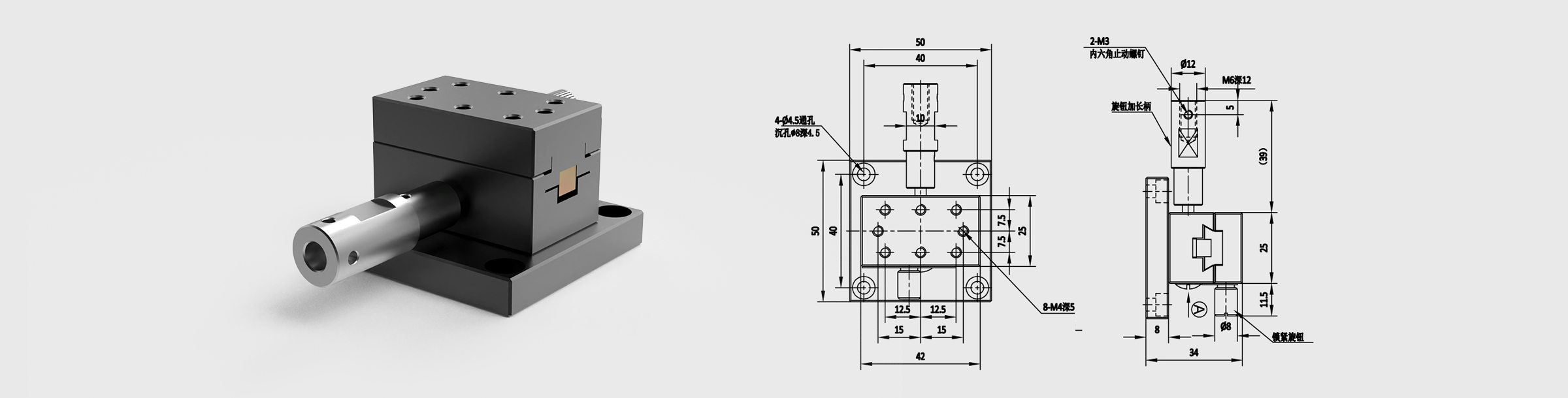 新品 X轴燕尾槽式手动位移台 台面尺寸25x42mm 行程±12mm 加长旋钮