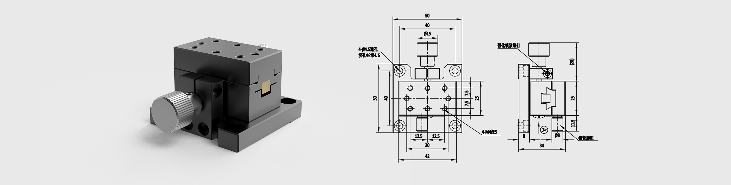 新品 X轴燕尾槽式手动位移台 台面尺寸25x42mm 行程±12mm 加强锁紧