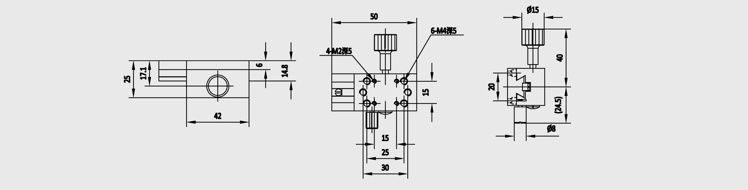 新品 X轴长行程燕尾槽式手动位移台 台面尺寸25x42mm 1滑块 行程30mm