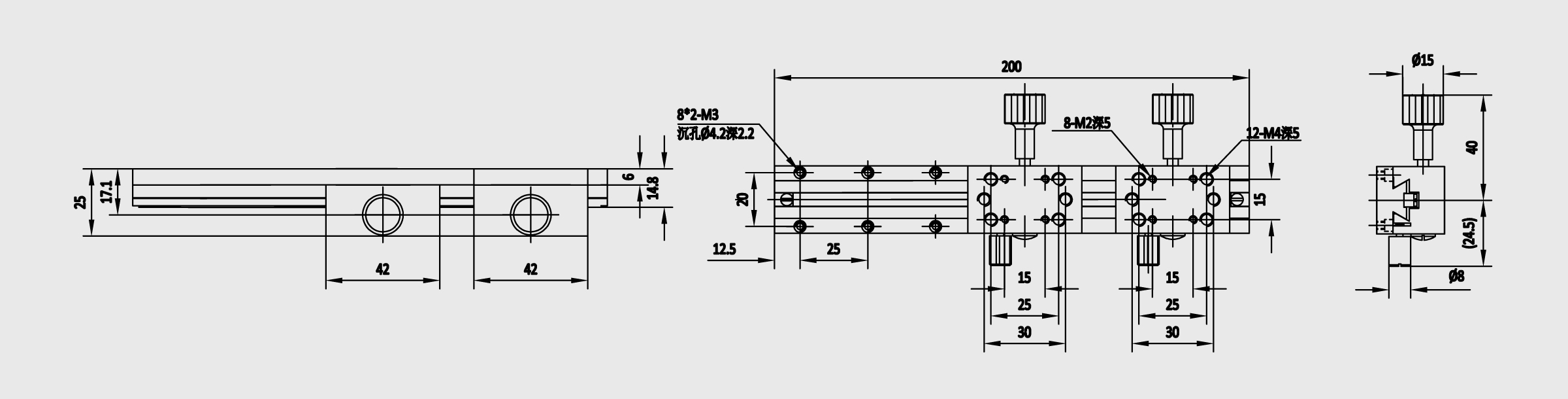 新品 X轴长行程燕尾槽式手动位移台 台面尺寸25x42mm 2滑块 行程138mm