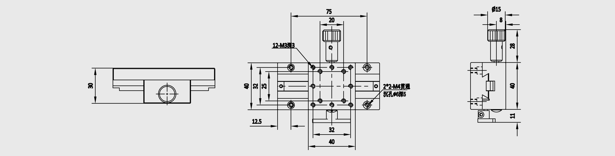 新品 X轴长行程燕尾槽式手动位移台 台面尺寸40x40mm 1滑块 行程60mm