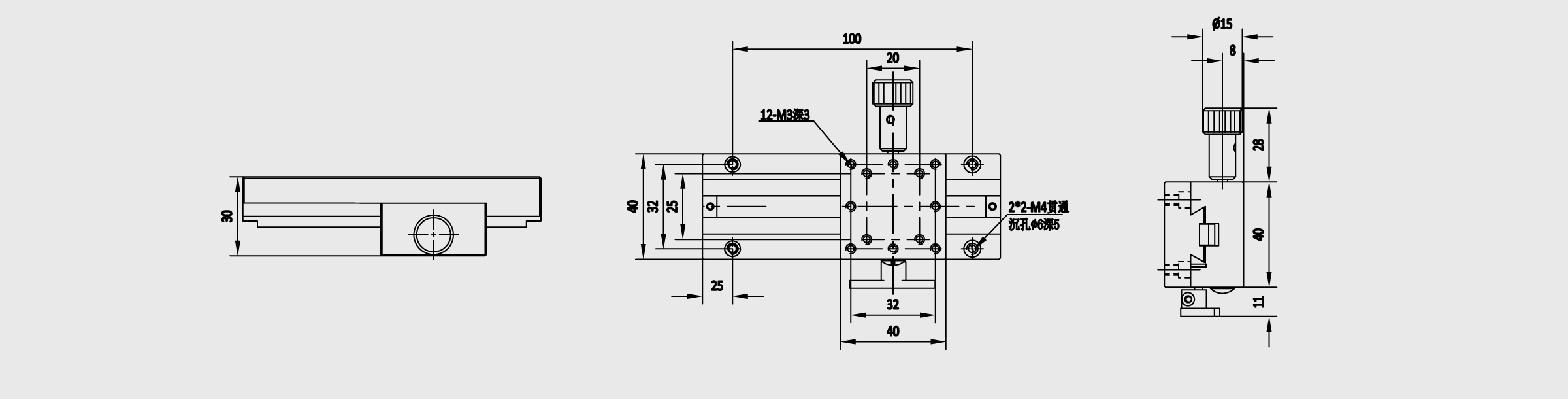 新品 X轴长行程燕尾槽式手动位移台 台面尺寸40x40mm 1滑块 行程110mm