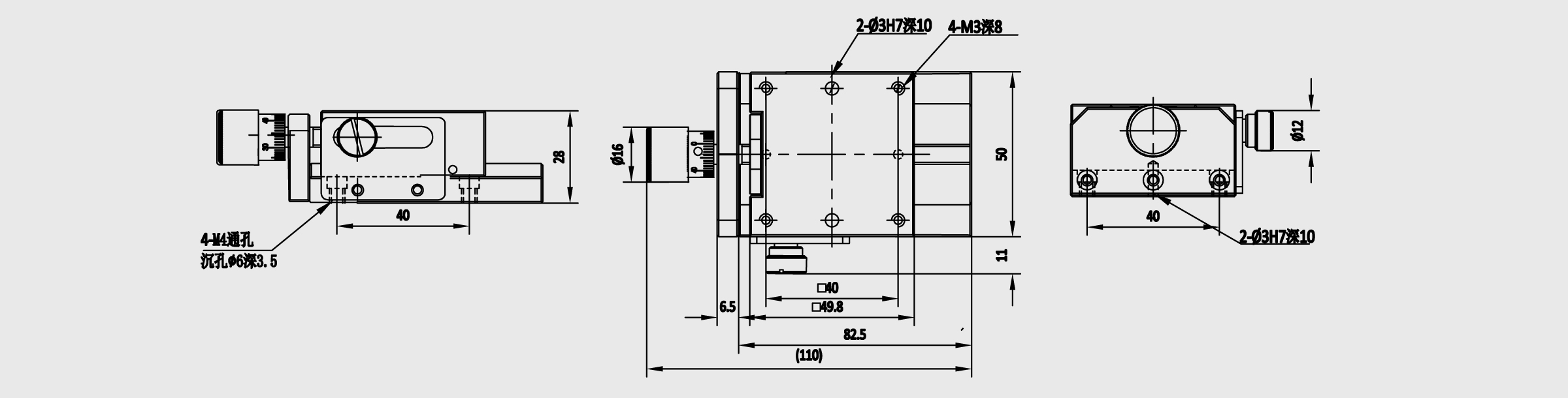 新品 X轴长行程丝杠进给燕尾槽式手动位移台 台面尺寸49.8x49.8mm 行程35mm