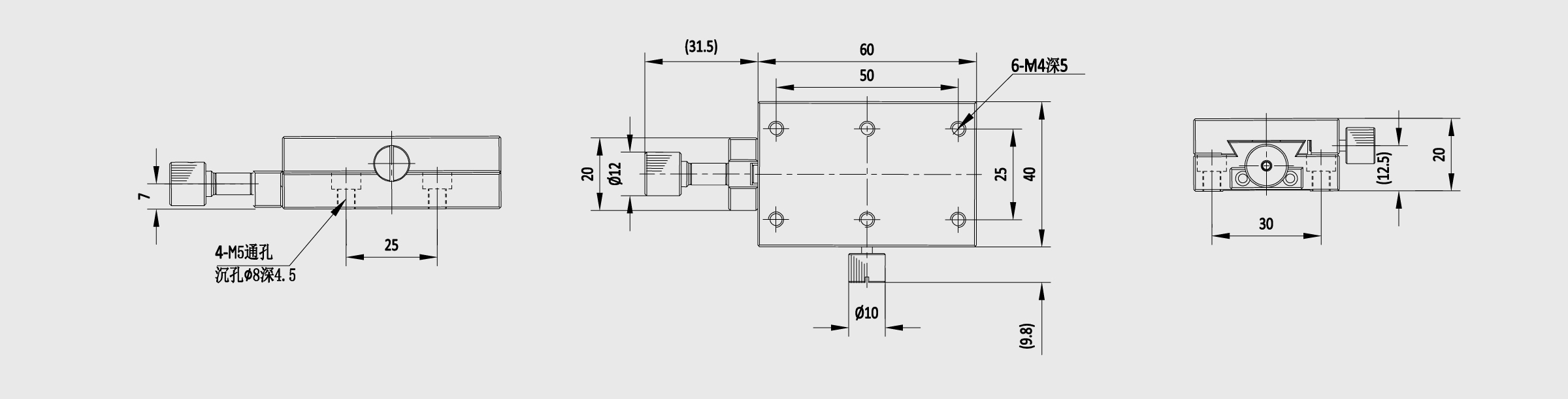 新品 X轴丝杠进给燕尾槽式手动位移台长方形 台面尺寸40x60mm 行程±20mm 螺距0.8mm