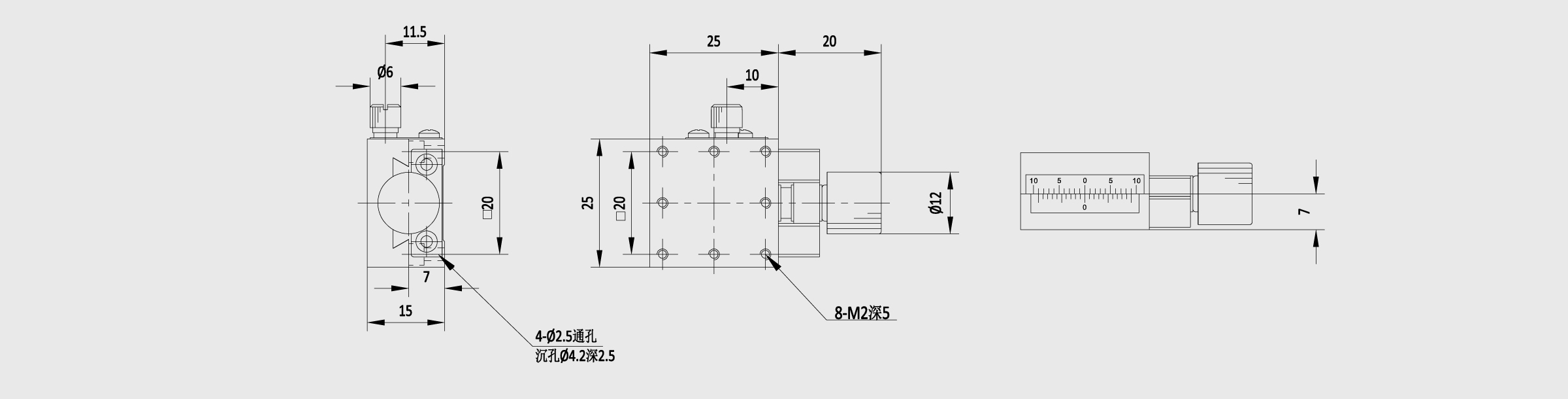 新品 X轴丝杆进给燕尾槽式手动位移台 台面尺寸25x25mm 行程±5mm 旋钮调节 铜合金(黑色氟树脂)
