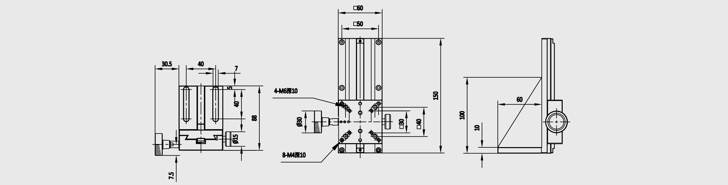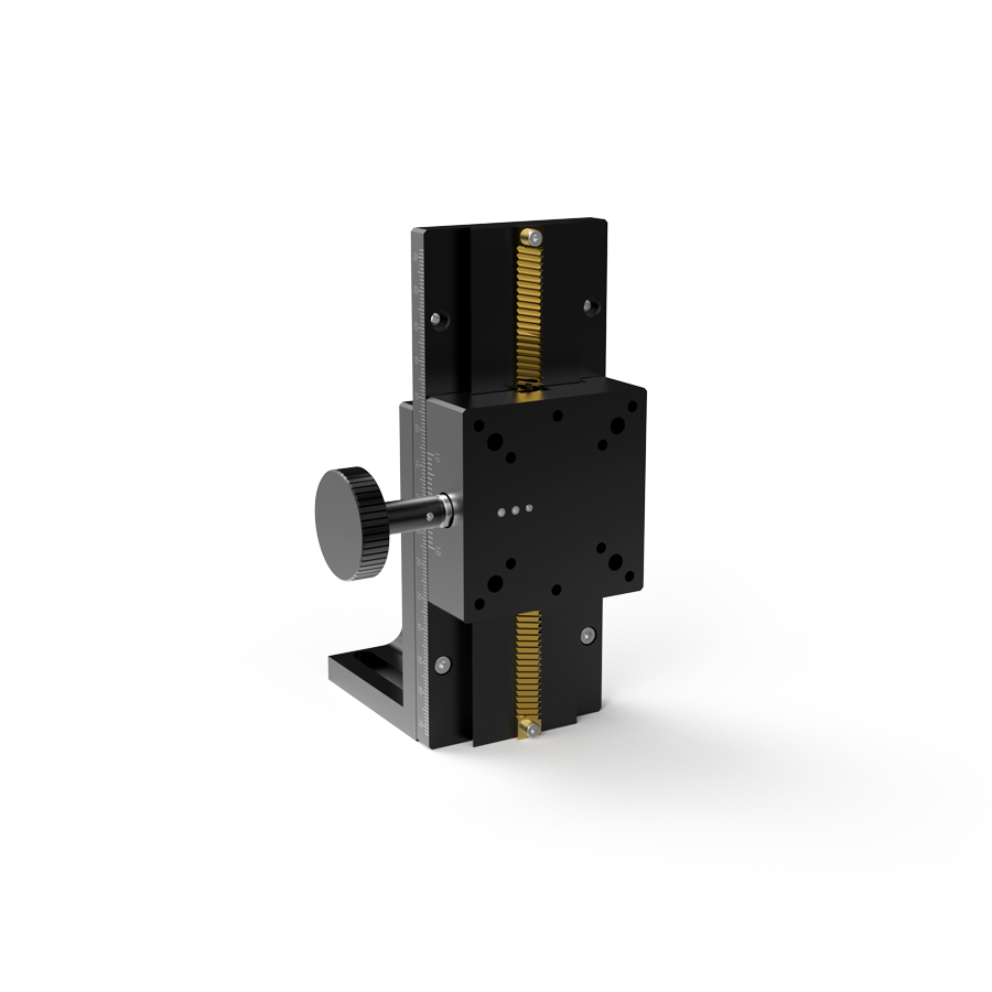 *单轴-Z轴 *台面尺寸: 25x42mm、40x40mm、60x60mm *长度:50~500mm *行程:30~460mm *旋钮回转一圈移动量18mm *标尺刻度最小读取量0.1mm *轨道方式使用燕尾槽式,在构造上燕尾槽导轨和滑块组成面接触方式进行直线运动, 提供稳定的导向,及耐荷重的表现 *驱动方式:齿轮齿条,适合快速移动 *主体材质-铝合金(黑色阳极氧化) *产品可选两个滑块,行程会减少相应滑块长度,滑块总长度不大能大于自身行程。