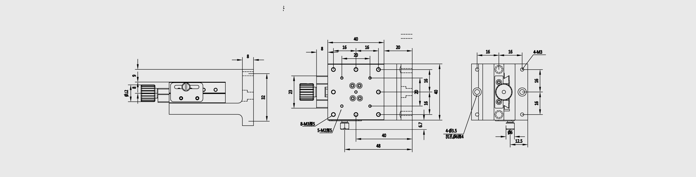 *单轴-Z轴 *旋钮回转一圈移动量0.5mm *标尺刻度最小读取量0.1mm *轨道方式使用燕尾槽式,在构造上燕尾槽导轨和滑块组成面接触方式进行直线运动, 提供稳定的导向,及耐荷重的表现 *驱动方式:丝杠进给, 精确往复驱动旋钮调节 *主体材质-铜合金(黑色氟树脂)/ 铝合金(黑色阳极氧化)