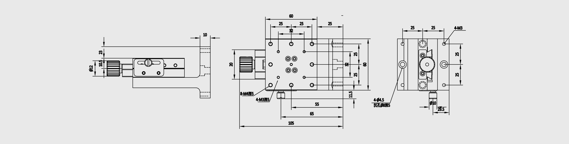 *单轴-Z轴 *旋钮回转一圈移动量0.5mm *标尺刻度最小读取量0.1mm *轨道方式使用燕尾槽式,在构造上燕尾槽导轨和滑块组成面接触方式进行直线运动, 提供稳定的导向,及耐荷重的表现 *驱动方式:丝杠进给, 精确往复驱动旋钮调节 *主体材质-铜合金(黑色氟树脂)/ 铝合金(黑色阳极氧化)