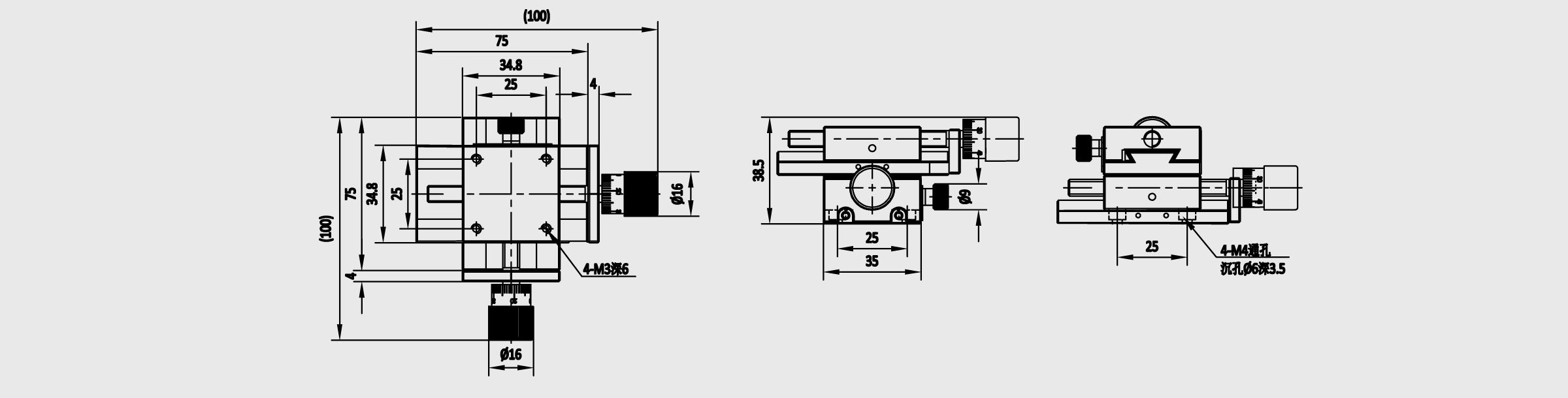 新品 XY轴长行程丝杠进给燕尾槽式手动位移台 台面尺寸34.8x34.8mm 行程40mm