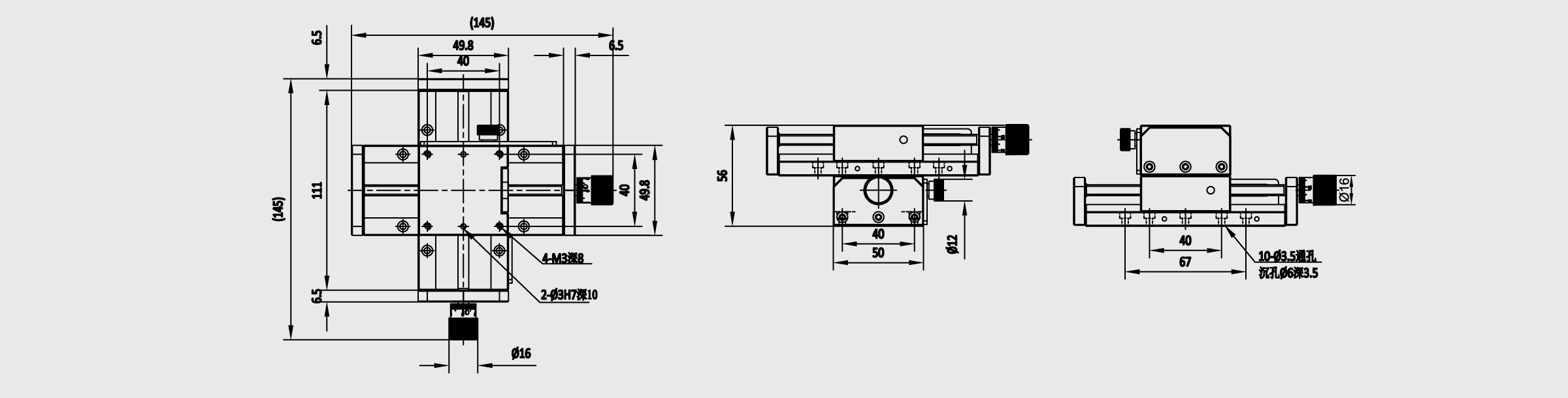 *双轴-XY轴 *旋钮回转一圈移动量0.5mm *标尺刻度最小读取量0.01mm *轨道方式使用燕尾槽式,在构造上燕尾槽导轨和滑块组成面接触方式进行直线运动, 提供稳定的导向,及耐荷重的表现 *驱动方式:丝杠进给, 精确往复驱动调节 *主体材质-铝合金(黑色阳极氧化)