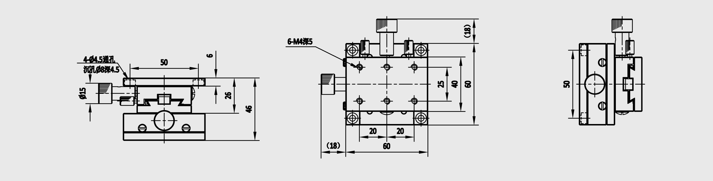 *双轴-XY轴 *旋钮回转一圈移动量18mm *标尺刻度最小读取量0.1mm *轨道方式使用燕尾槽式,在构造上燕尾槽导轨和滑块组成面接触方式进行直线运动, 提供稳定的导向,及耐荷重的表现 *驱动方式:齿轮齿条,适合快速移动 *主体材质-铝合金(黑色阳极氧化)