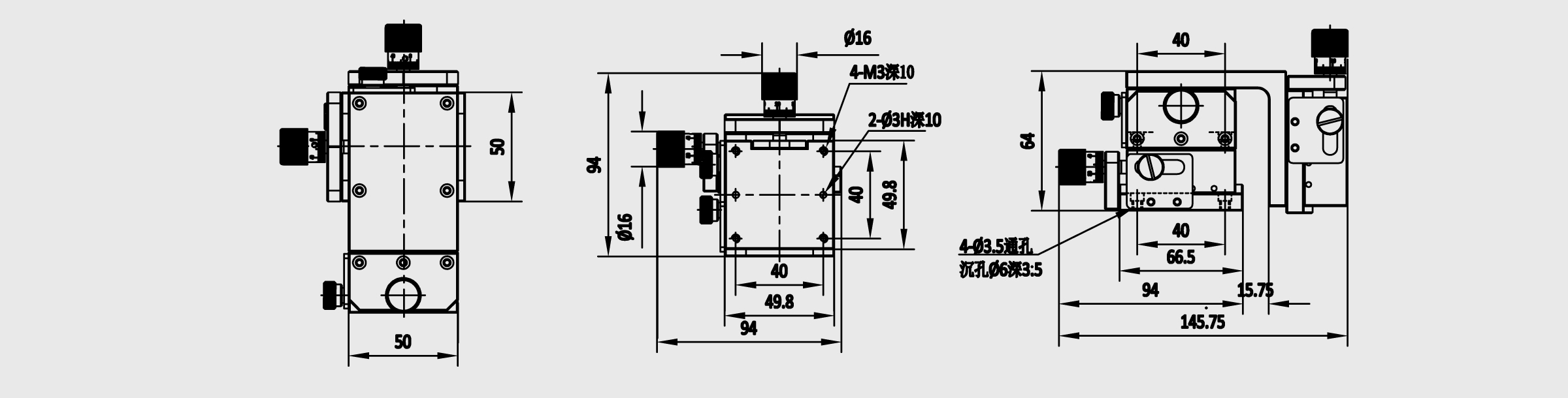 *三轴-XYZ轴 *旋钮回转一圈移动量0.5mm *标尺刻度最小读取量0.01mm *轨道方式使用燕尾槽式,在构造上燕尾槽导轨和滑块组成面接触方式进行直线运动, 提供稳定的导向,及耐荷重的表现 *驱动方式:丝杠进给,精确往复驱动调节 *主体材质-铝合金(黑色阳极氧化)