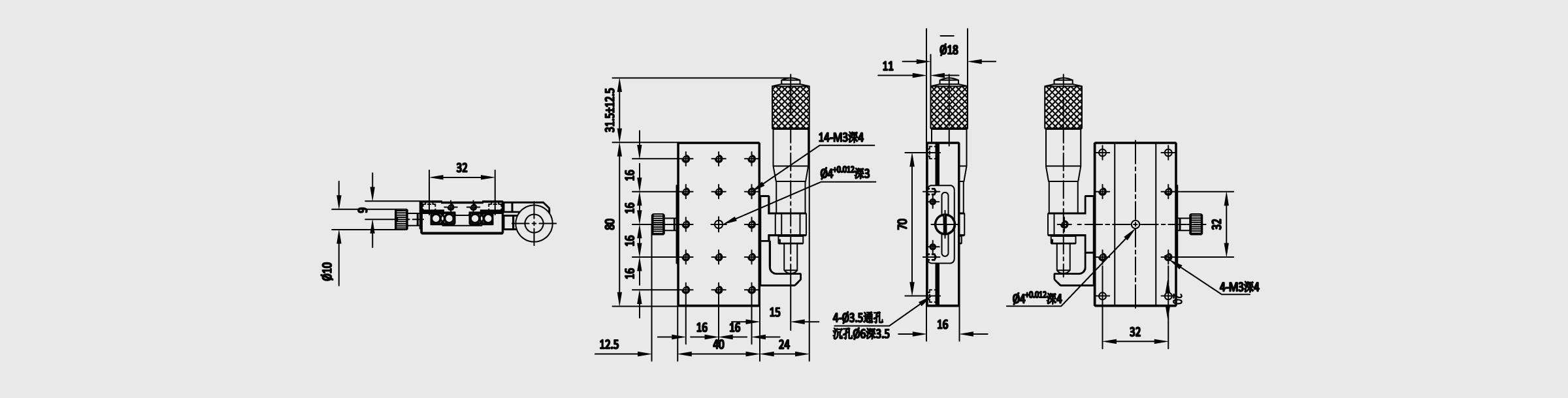 *单轴-X轴 *轨道方式使用交叉滚柱导轨 *驱动方式:千分尺,最小读取量10μm *主体材质-SUS440C(无电解镀镍) *耐负载大、刚性最强 *V型槽在热处理和精密研磨加工后,得到优异的平行度、平面度;滚子经过近似镜面的精密研磨后得以圆滑的滚动,直径的均一性非常优秀,可以对滑台进行精密的导向