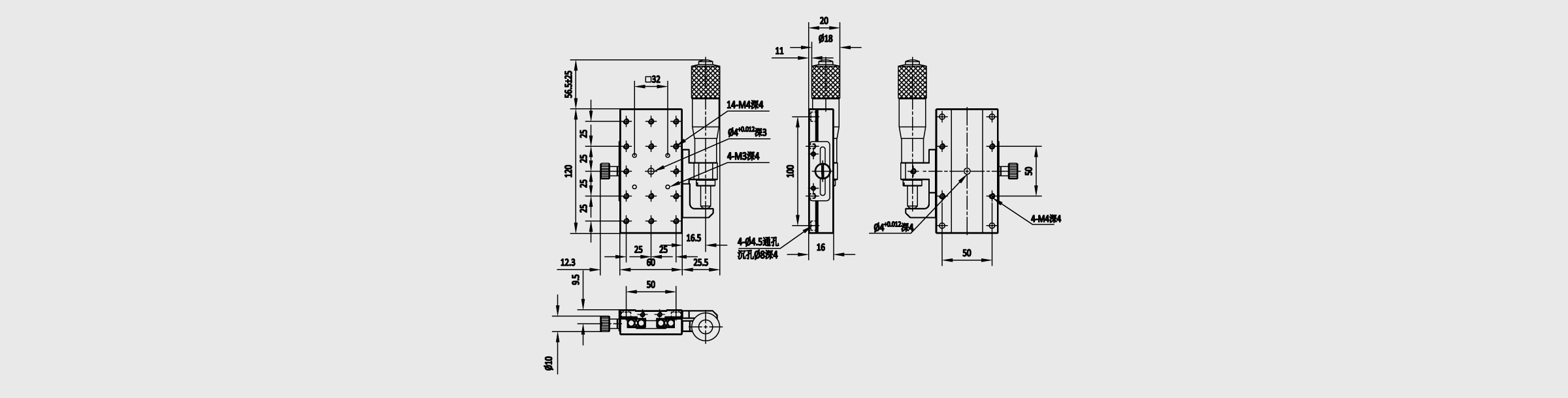 新品 X轴交叉滚柱式手动位移台长方形 台面尺寸60x120mm 行程±25mm