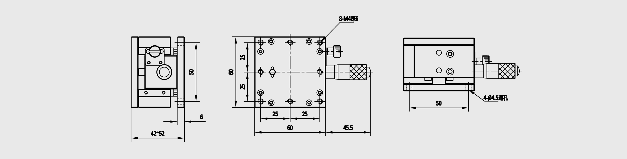 *单轴-水平Z轴 *轨道方式使用交叉滚柱导轨 *驱动方式:千分尺,最小读取量10μm *主体材质-铝合金(黑色阳极氧化) *耐负载大、刚性最强 *V型槽在热处理和精密研磨加工后,得到优异的平行度、平面度;滚子经过近似镜面的精密研磨后得以圆滑的滚动,直径的均一性非常优秀,可以对滑台进行精密的导向