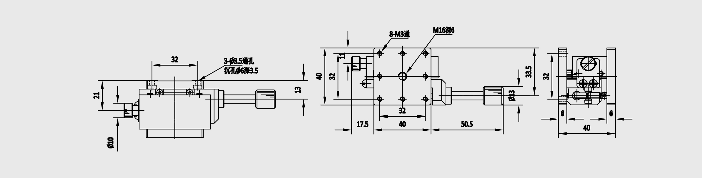*单轴-水平Z轴 *轨道方式使用交叉滚柱导轨 *驱动方式:丝杠进给 *旋钮旋转一圈移动量0.5mm *主体材质-铝合金(黑色阳极氧化) *耐负载大、刚性最强 *V型槽在热处理和精密研磨加工后,得到优异的平行度、平面度;滚子经过近似镜面的精密研磨后得以圆滑的滚动,直径的均一性非常优秀,可以对滑台进行精密的导向