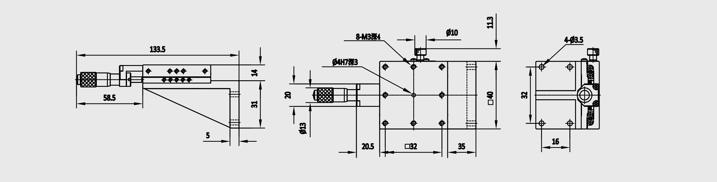 *单轴-Z轴 *轨道方式使用线性滚珠导轨 *驱动方式:千分尺进给 *千分尺最小读取量10μm *主体材质-SUS440C(无电解镀镍) *导轨面经过硬化,并施以高精度切削研磨加工,得到优异的平行度、平面度 *适用于高精度,中载荷的精密位置调节的场合