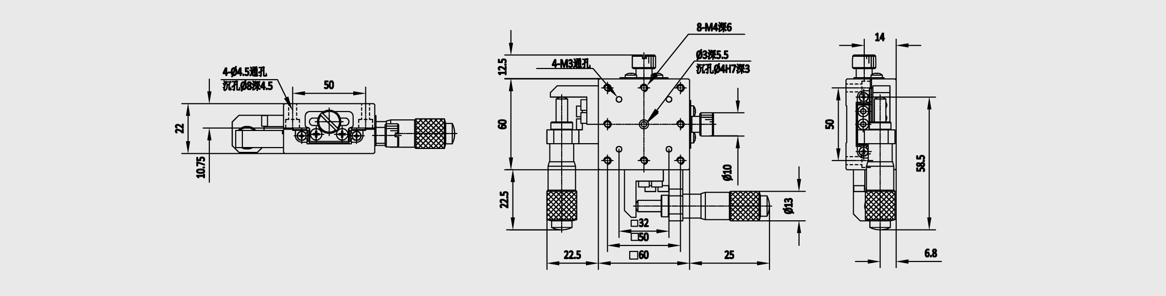 新品 XY轴线性滚珠式手动位移台不锈钢 台面尺寸60x60mm 行程±6.5mm