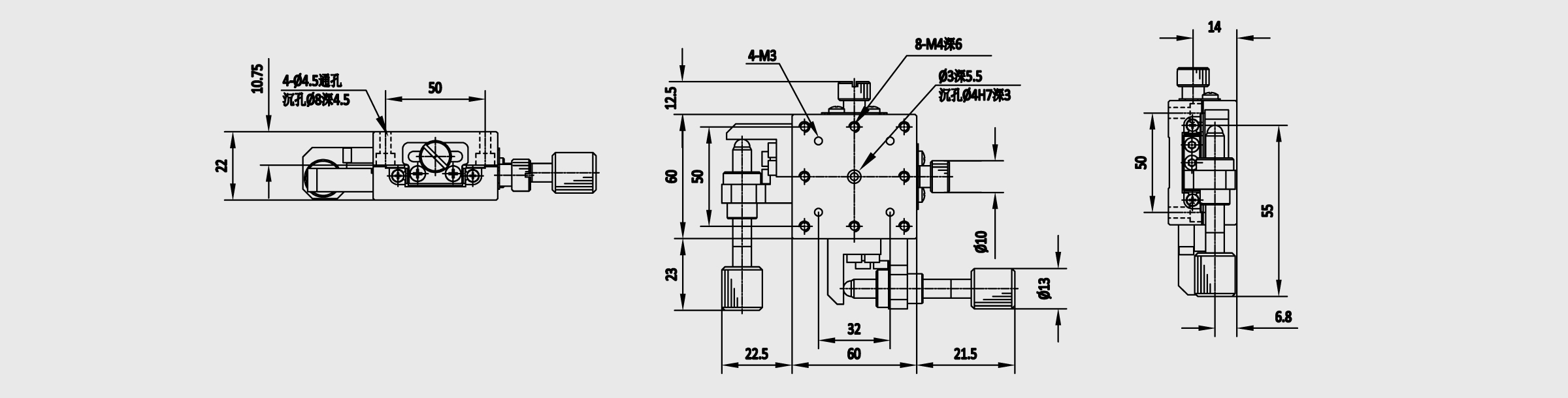 *双轴-XY轴 *轨道方式使用线性滚珠导轨 *驱动方式:滚珠式进给 *旋钮旋转一圈移动量0.5mm *主体材质-SUS440C(无电解镀镍) *导轨面经过硬化,并施以高精度切削研磨加工,得到优异的平行度、平面度 *适用于高精度,中载荷的精密位置调节的场合