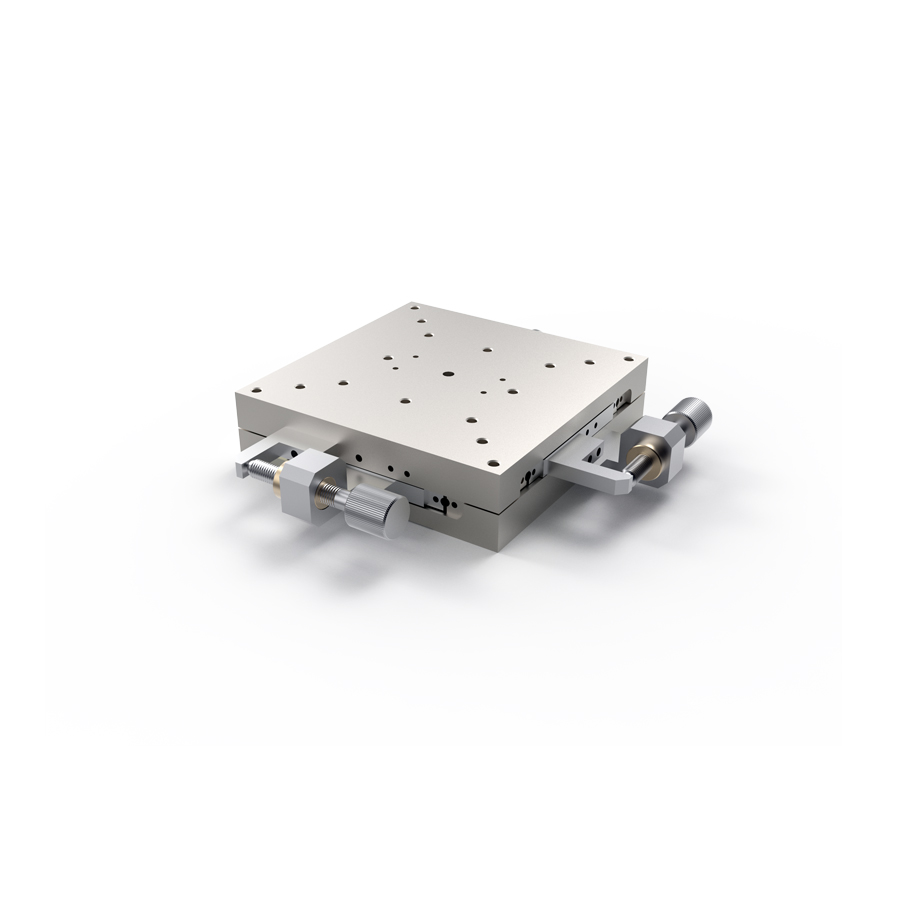 *双轴-XY轴 *轨道方式使用线性滚珠导轨 *驱动方式:滚珠式进给 *旋钮旋转一圈移动量0.5mm *主体材质-SUS440C(无电解镀镍) *导轨面经过硬化,并施以高精度切削研磨加工,得到优异的平行度、平面度 *适用于高精度,中载荷的精密位置调节的场合