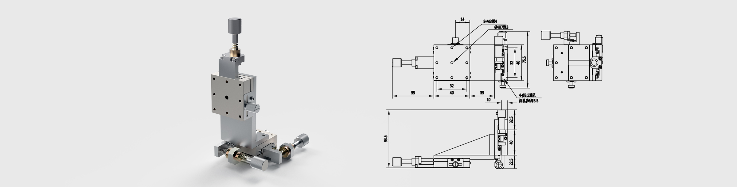 *三轴-XYZ轴 *轨道方式使用线性滚珠导轨 *驱动方式:千分尺进给 *千分尺最小读取量10μm *主体材质-SUS440C(无电解镀镍) *导轨面经过硬化,并施以高精度切削研磨加工,得到优异的平行度、平面度 *适用于高精度,中载荷的精密位置调节的场合