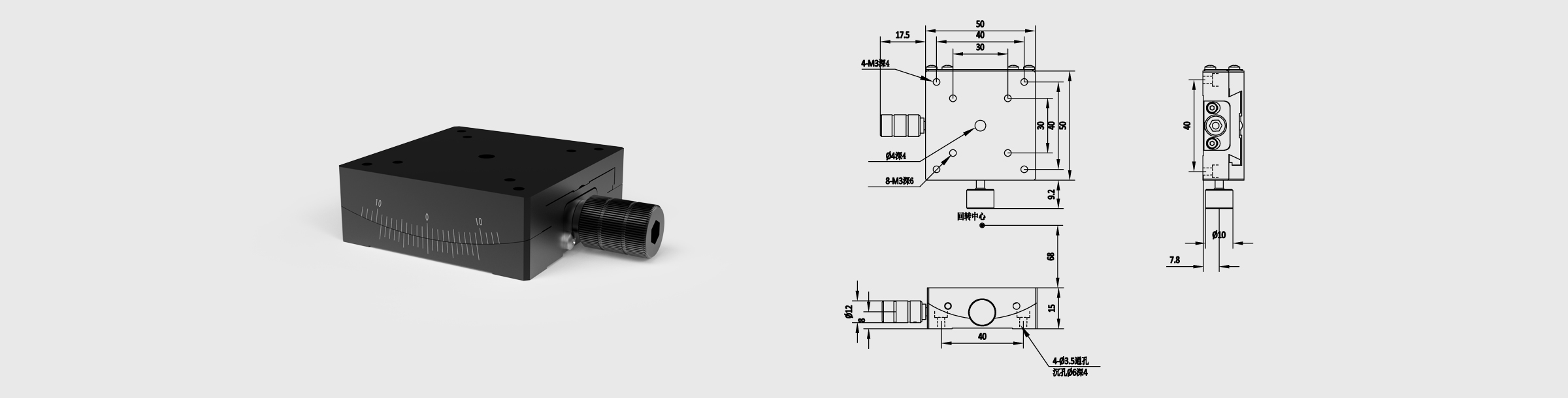 新品 α轴测角燕尾槽式手动位移台 台面尺寸50x50mm 中心高度68mm 铝合金(黑色阳极氧化)