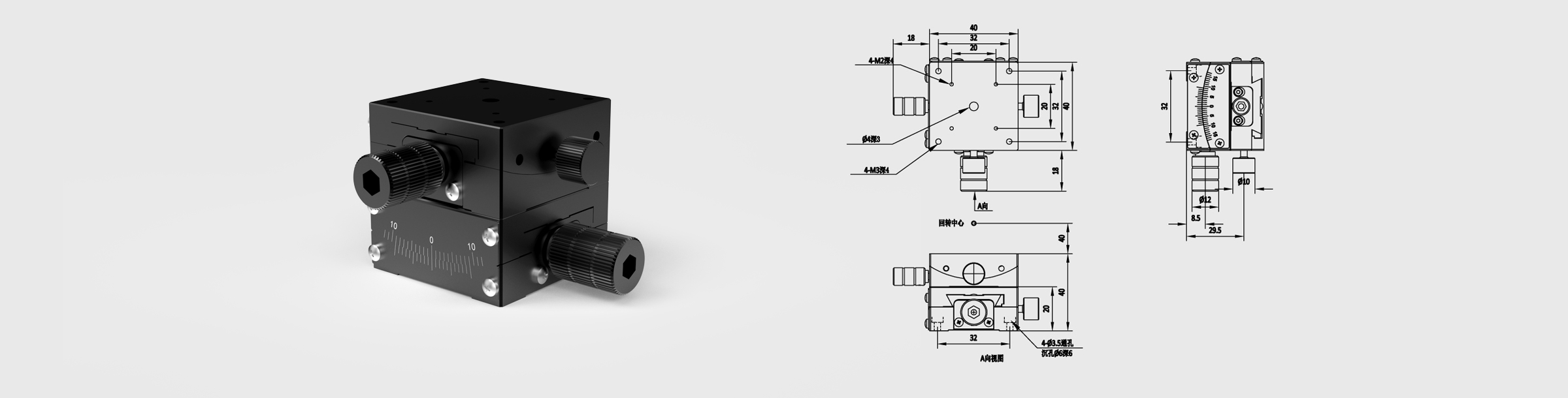 新品 αβ轴测角燕尾槽式手动位移台 台面尺寸40x40mm 中心高度40mm
