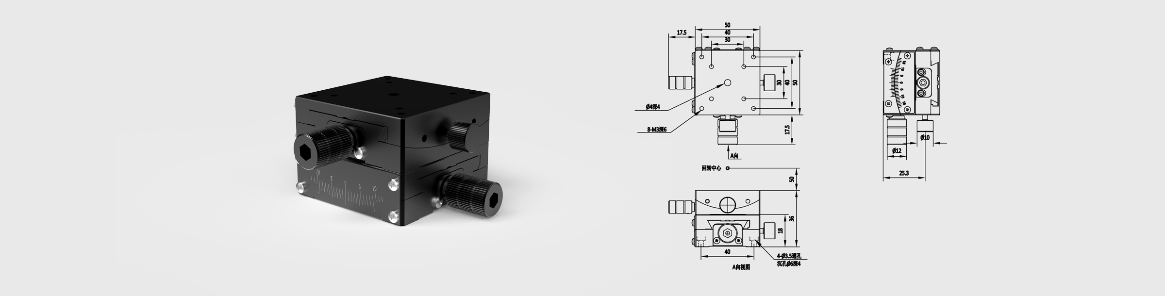 新品 αβ轴测角燕尾槽式手动位移台 台面尺寸50x50mm 中心高度50mm